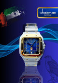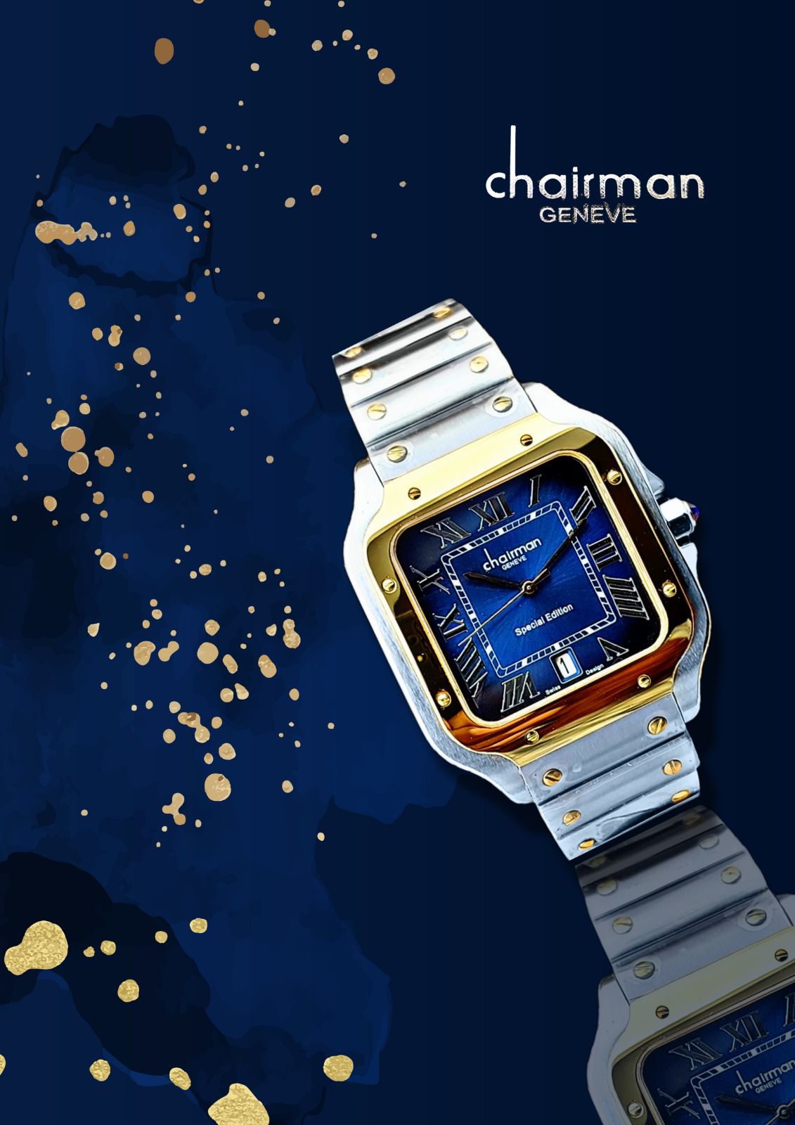 ارتقِ بأسلوبك مع ساعة جينيف الفضية ذات المينا الزرقاء المستطيلة وسوار ذهبي من Chairman التي تتميز بعلم أبو ظبي الشهير. تتميز هذه الساعة المذهلة بالأناقة بتصميمها الأنيق، مما يضيف لمسة من الرقي إلى أي مظهر. كن على اطلاع بأحدث صيحات الموضة مع هذه الساعة الرائعة.