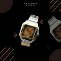 ساعة شيرمان جينيف مستطيلة الشكل بمينا قهوة وسوار فضي وذهبي مع علم أبو ظبي