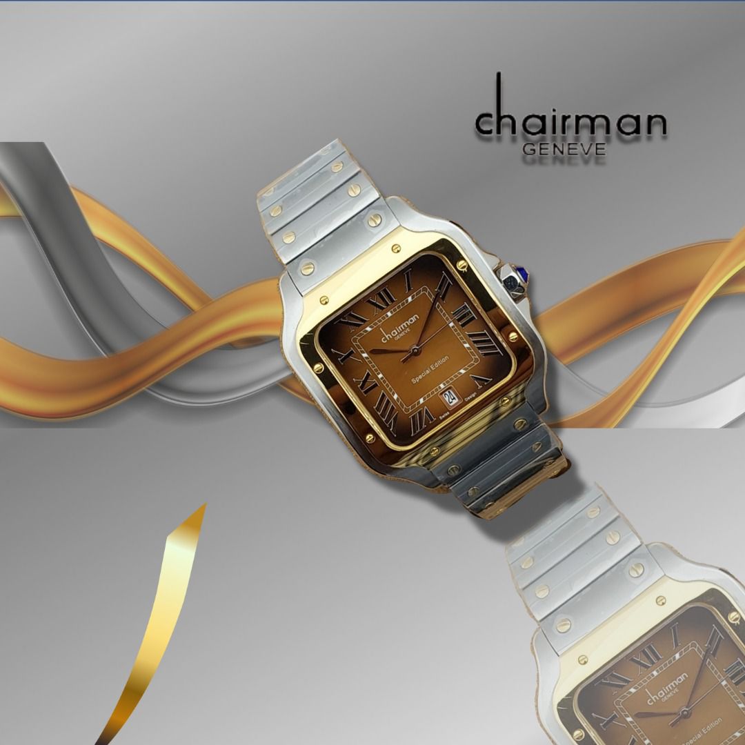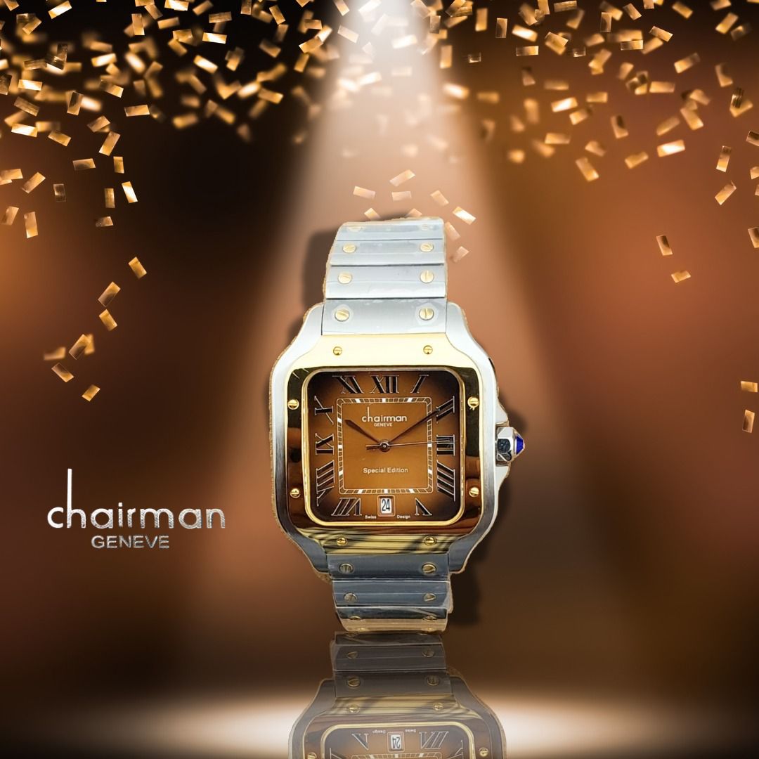 تتميز ساعة Chairman Geneve ذات الإصدار الخاص بمينا مستطيلة بلون القهوة بحزام فضي وذهبي فاخر، مما يجعلها الإكسسوار المثالي لأي مناسبة. يضفي ميناها المستطيل الفريد لمسة من الأناقة، بينما تضمن دقة ضبط الوقت التزامك بالجدول الزمني دائمًا. ارتقِ بأسلوبك مع هذه الساعة الخالدة.