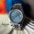 Special Edition Chairman Geneve Baby Blue Arabic Day And Dated Dial Silver Chain Gents Watch