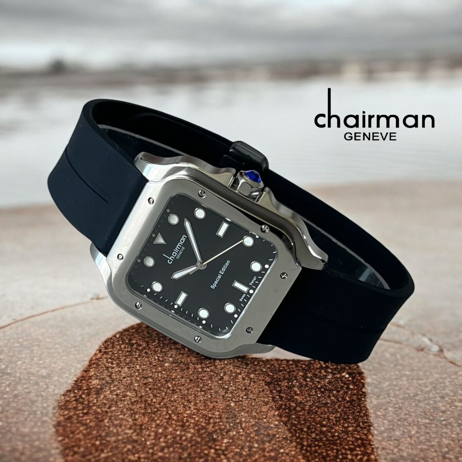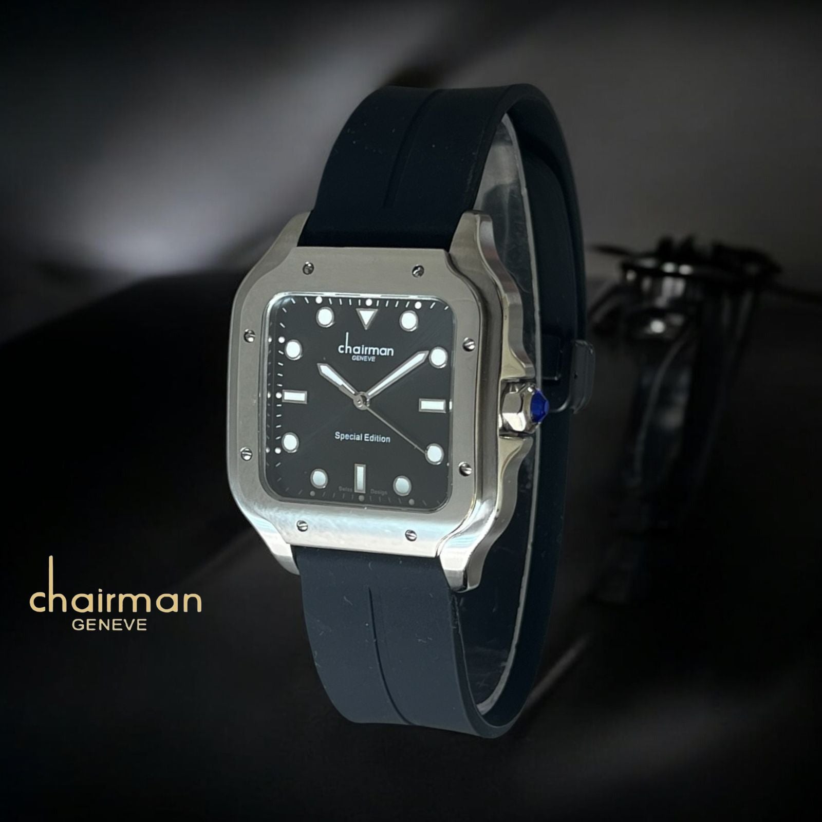 ساعة Chairman Geneve ذات الإصدار الخاص للرجال بمينا سوداء وحزام أسود