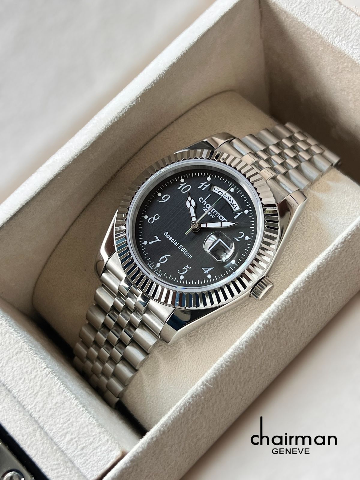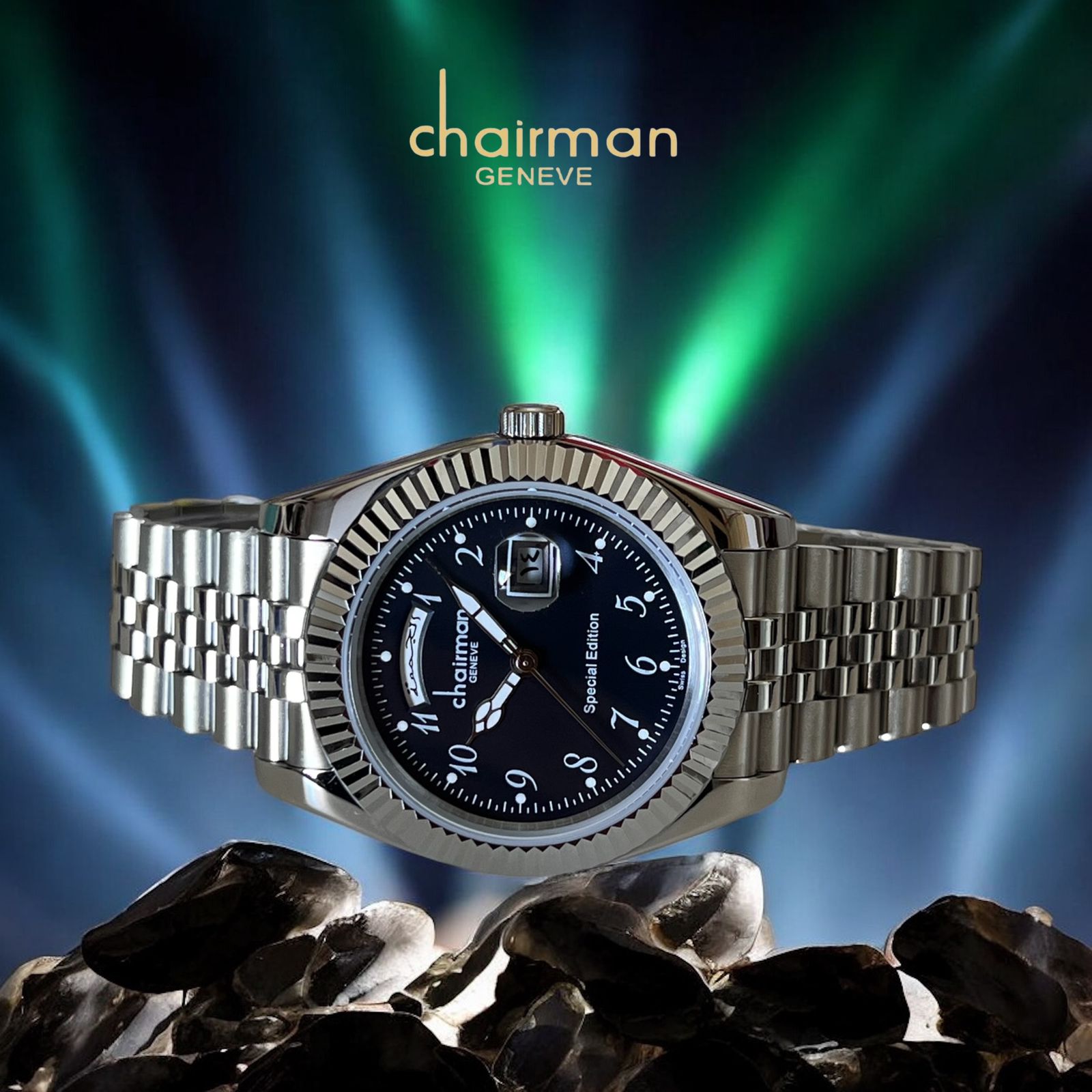 Special Edition Chairman Geneve Dated Black Dial Silver Chain Gents Watch