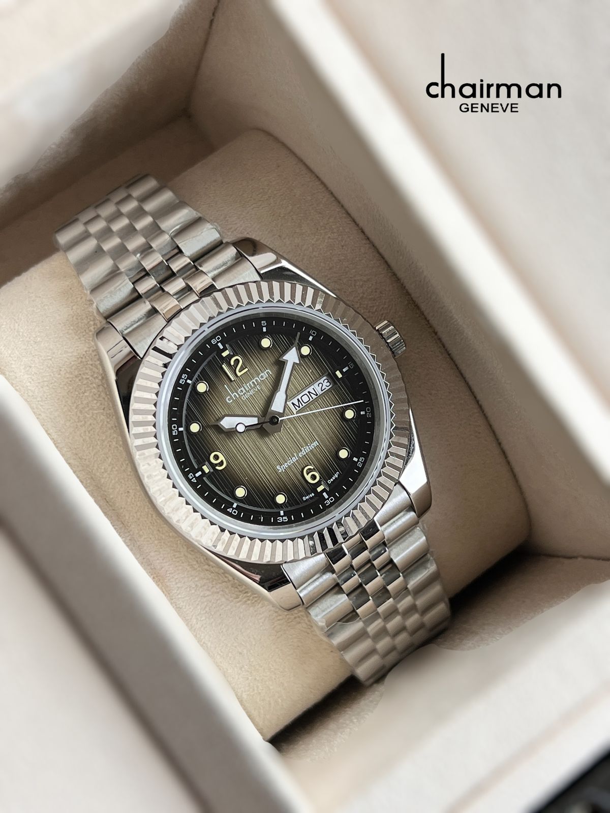 Special Edition Chairman Geneve Day And Dated Gradient Dial Silver Chain Gents Watch