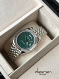 Special Edition Chairman Geneve Green Day And Dated Arabic Dial Silver Chain Gents Watch