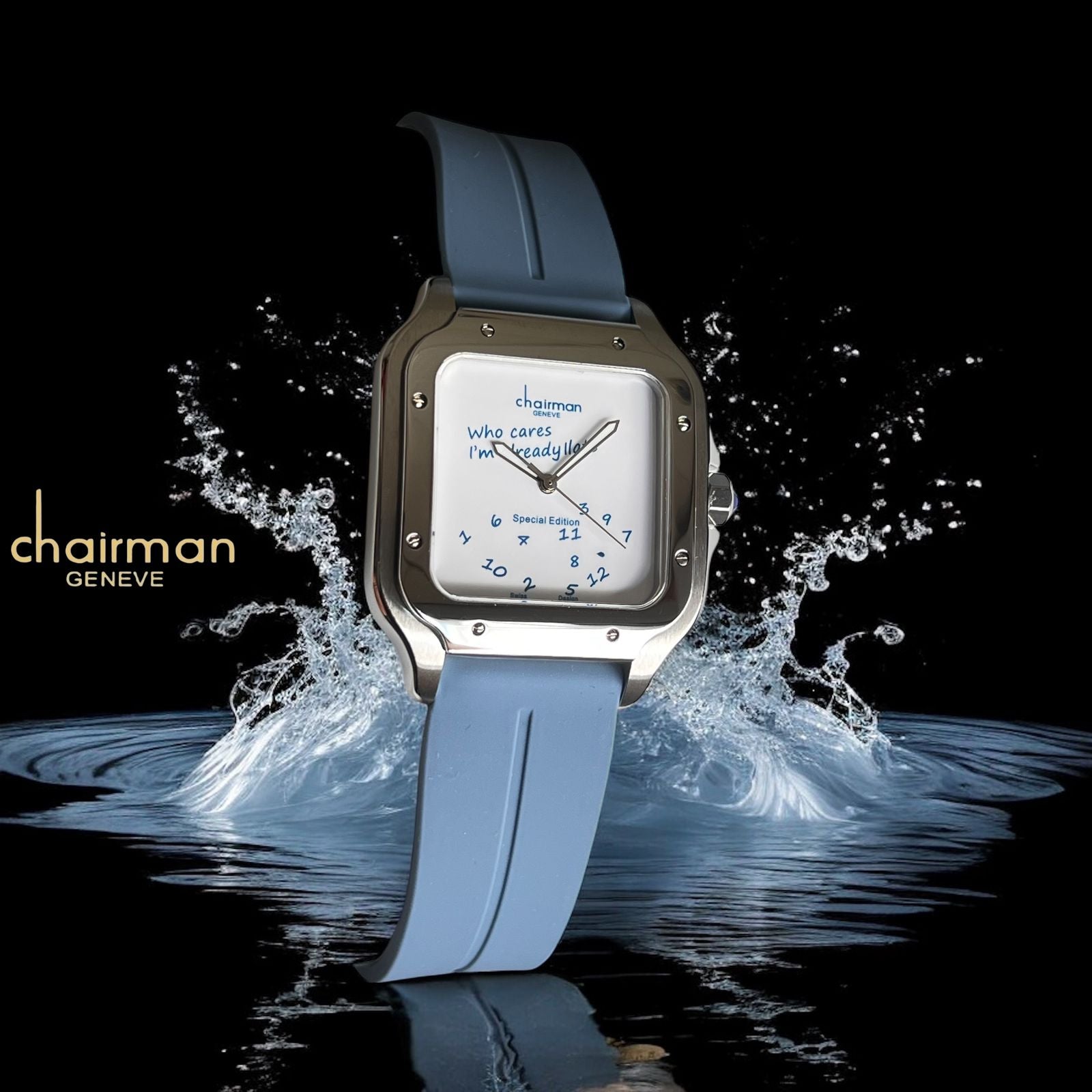 Elevate your wrist with the Special Edition Chairman Geneve—a sophisticated timepiece that seamlessly blends Swiss-inspired craftsmanship with contemporary style. The pristine white dial offers exceptional readability, while the striking blue strap adds a touch of refined elegance to any ensemble. Designed for the modern gentleman who appreciates quality and distinction, this watch makes a powerful statement whether in the boardroom or at social gatherings. A timeless investment piece that transcends trends.