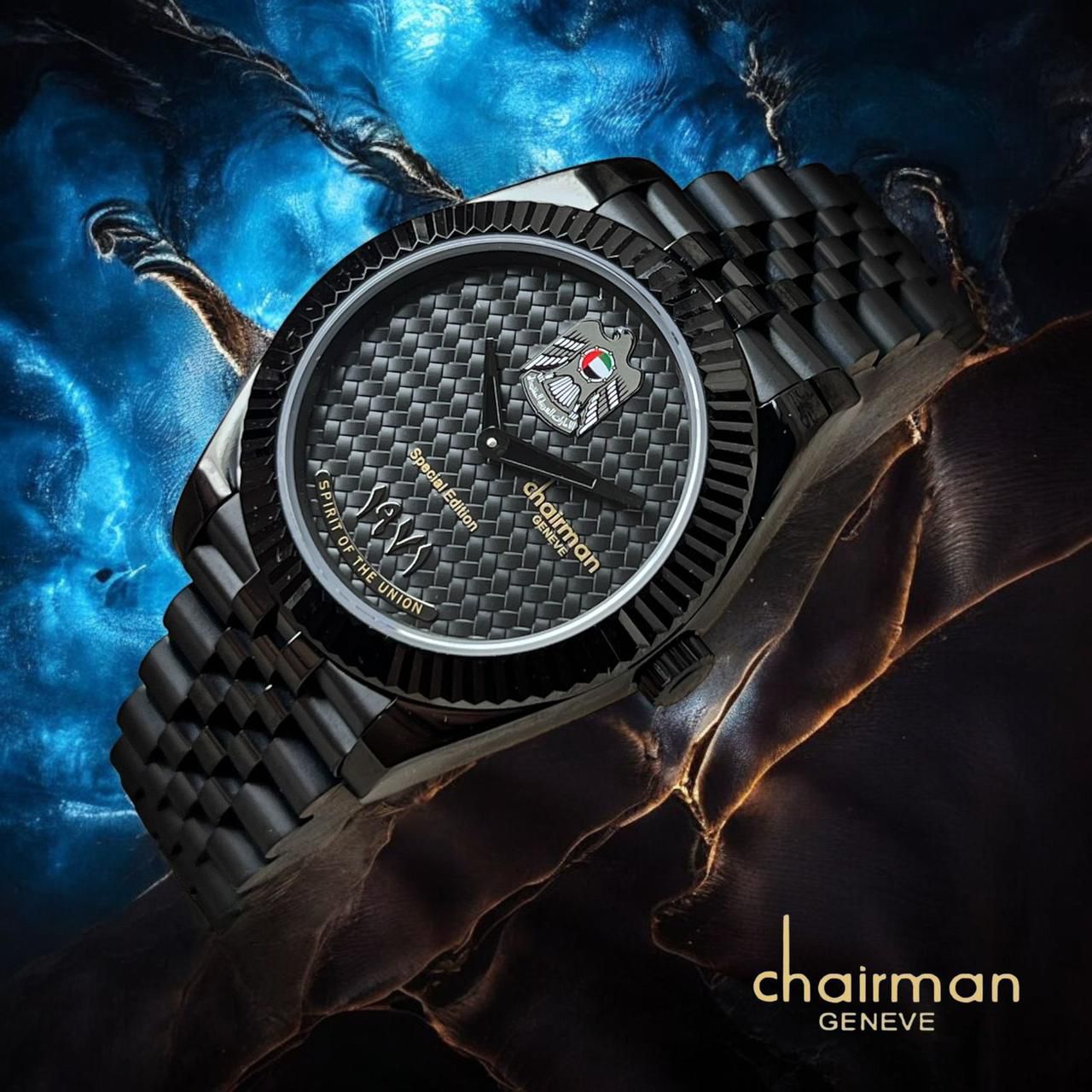 Special Edition UAE Emblem Chairman Geneve Black Gents Watch