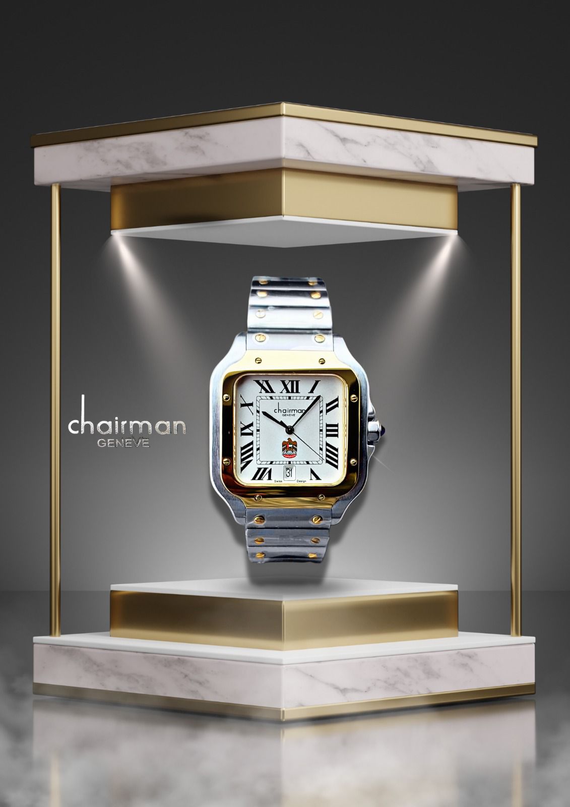استمتع بالفخامة والوطنية مع ساعة Chairman Geneve Silver Gold Strap ذات المينا المربعة التي تتميز بتصميم علم أبو ظبي المذهل. ارتقِ بأسلوبك مع إظهار حبك لبلدك. بفضل المينا المربعة الفريدة والحزام الذهبي الأنيق، تعد هذه الساعة القطعة المثالية.