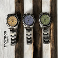 Superlative Chronometer Chairman Geneve Cream Blue Green Color Dial Silver Chain Gents Three Watches