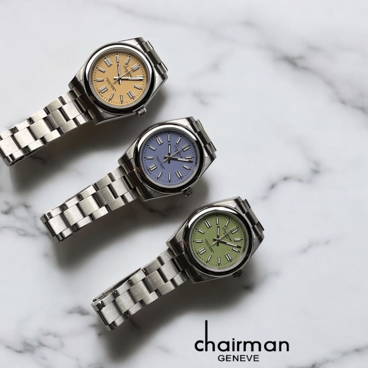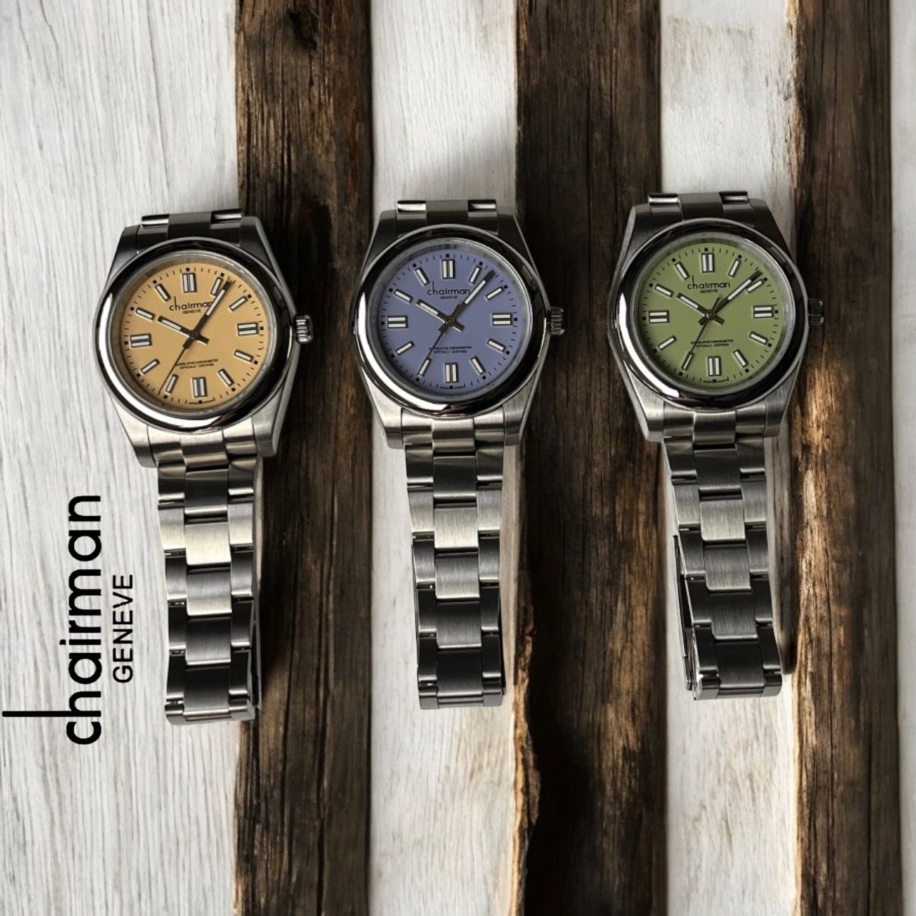Elevate your style with our Superlative Chronometer Chairman Geneve Cream Blue Green Color Dial Silver Chain Gents Three Watches. Precision and elegance combined in one timepiece. Perfect for the modern gentleman who values both functionality and fashion. Upgrade your accessory game with these luxurious watches.