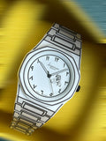 استمتع بالفخامة والرقي مع ساعة Swiss Design Chairman Geneve. بفضل قرصها الأبيض العربي الكلاسيكي وحزامها الأبيض والأسود الأنيق، تعد هذه الساعة الرجالية مثالية لأي مناسبة. صُنعت هذه الساعة بدقة واهتمام بالتفاصيل، وهي شهادة على التصميم والجودة السويسرية.