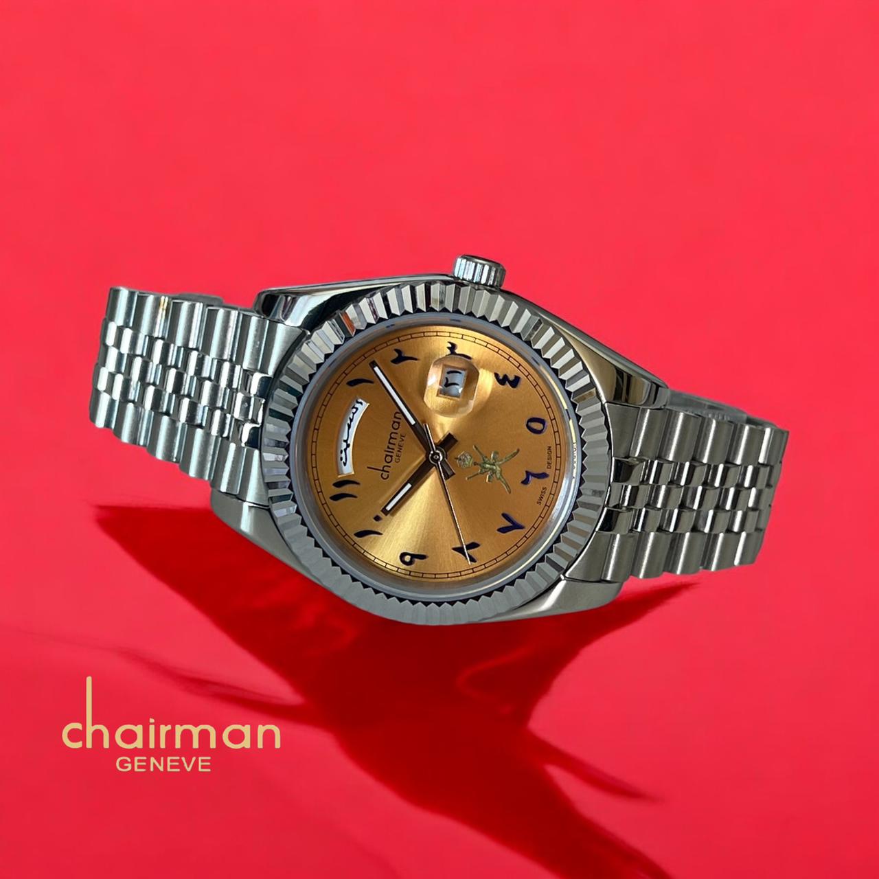 ارتقِ بأسلوبك مع ساعة Chairman من Swiss Design. تتميز هذه الساعة بمينا برتقالية وسلسلة فضية وعرض لليوم والتاريخ، وتضفي لمسة من الرقي على أي مظهر. تابع أيامك واظهر بمظهر أنيق دون عناء مع هذه القطعة المميزة.
