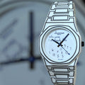 نقدم لك ساعة Swiss Design Chairman Geneve المتطورة، والتي تتميز بمينا بيضاء أنيقة وحزام متعدد الاستخدامات باللونين الأبيض والأسود. أناقة ودقة لا تنتهيان مع مرور الزمن على معصمك.