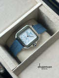 ساعة Swiss Design Chairman Geneve للرجال بمينا بيضاء وحزام أزرق