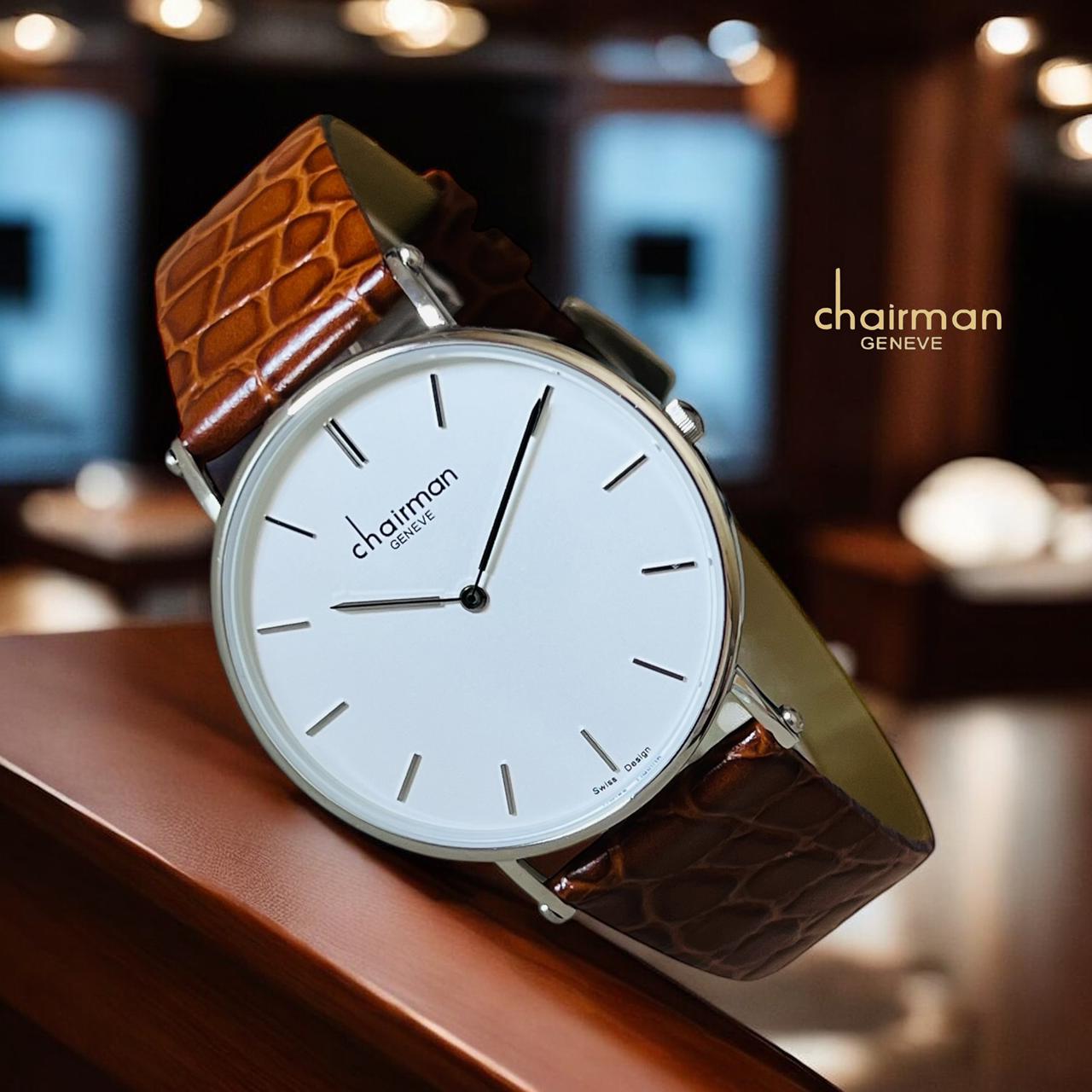Elevate your everyday style with the Swiss Design Chairman Geneve, a sophisticated timepiece that seamlessly blends precision engineering with refined aesthetics. Featuring a pristine white dial that ensures effortless readability and a rich brown leather strap that adds warmth and character to any outfit, this gents watch delivers timeless elegance for the modern gentleman. Crafted with Swiss design excellence, it's the perfect accessory for boardroom meetings or casual occasions. Make a statement with a watch that speaks to your discerning taste.