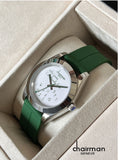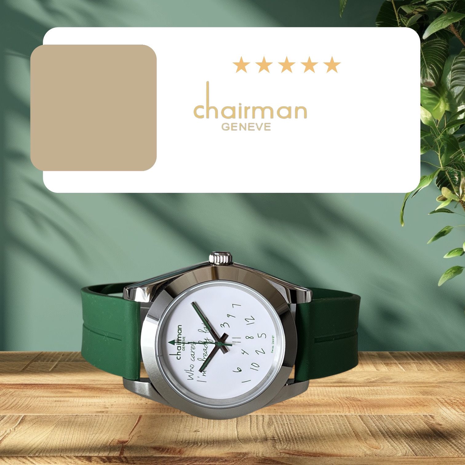 Elevate your style with the Swiss Design Chairman Geneve watch, featuring a crisp white dial paired with a striking green strap. Crafted for gentlemen who appreciate timeless elegance and modern flair, this watch combines precision Swiss craftsmanship with a bold color statement. Perfect for both formal occasions and everyday wear, it offers reliable performance and a distinctive look that sets you apart.