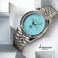 UAE Emblem Day And Dated Sky Blue Dial Chairman Geneve Silver Chain Gents Watch