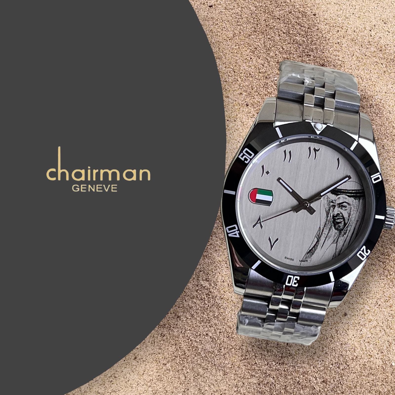 أظهر فخرك الوطني بساعة علم الإمارات العربية المتحدة. تتميز ساعة Chairman Geneve Swiss Made هذه بمينا عربية مذهلة، مثالية لإظهار حبك لبلدك. كن على اطلاع بأحدث صيحات الموضة مع هذه الساعة الفريدة والأنيقة.