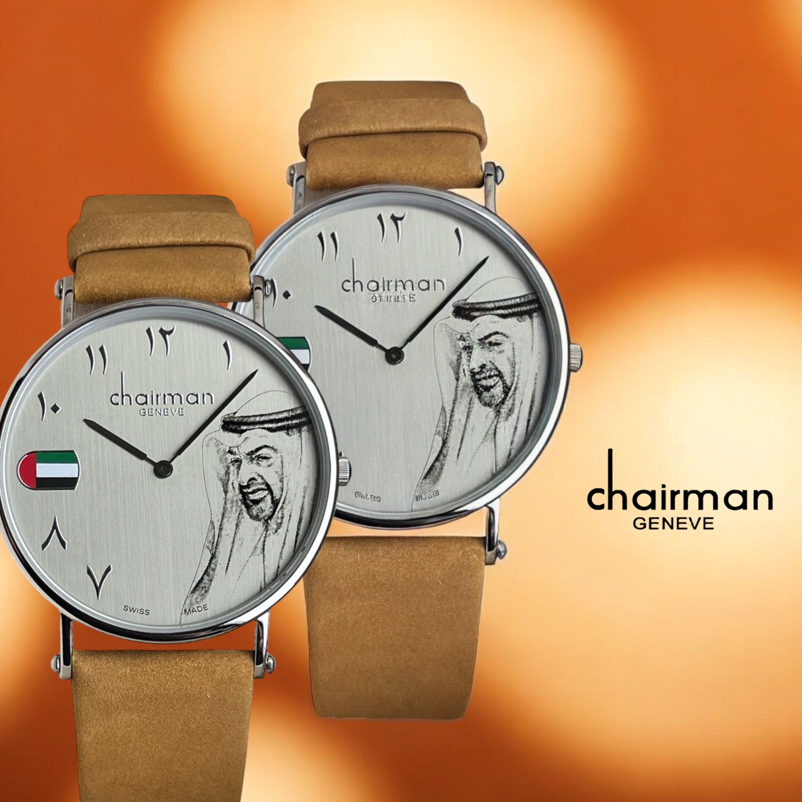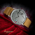 أظهر فخرك بدولة الإمارات العربية المتحدة من خلال ساعة Chairman Geneve Swiss Made. تتميز بمينا عربية ومينا رمادية وحزام جلدي بني، إنها طريقة أنيقة لتمثيل بلدك. مصنوعة يدويًا بدقة وأناقة، هذه الساعة مثالية لأي مناسبة.