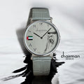 ساعة علم الإمارات العربية المتحدة مينا عربية ساعة شيرمان جينيف سويسرية الصنع مينا رمادية للرجال بحزام جلدي رمادي