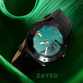 ساعة زايد علم الإمارات العربية المتحدة مينا خضراء صغيرة حزام جلدي أسود