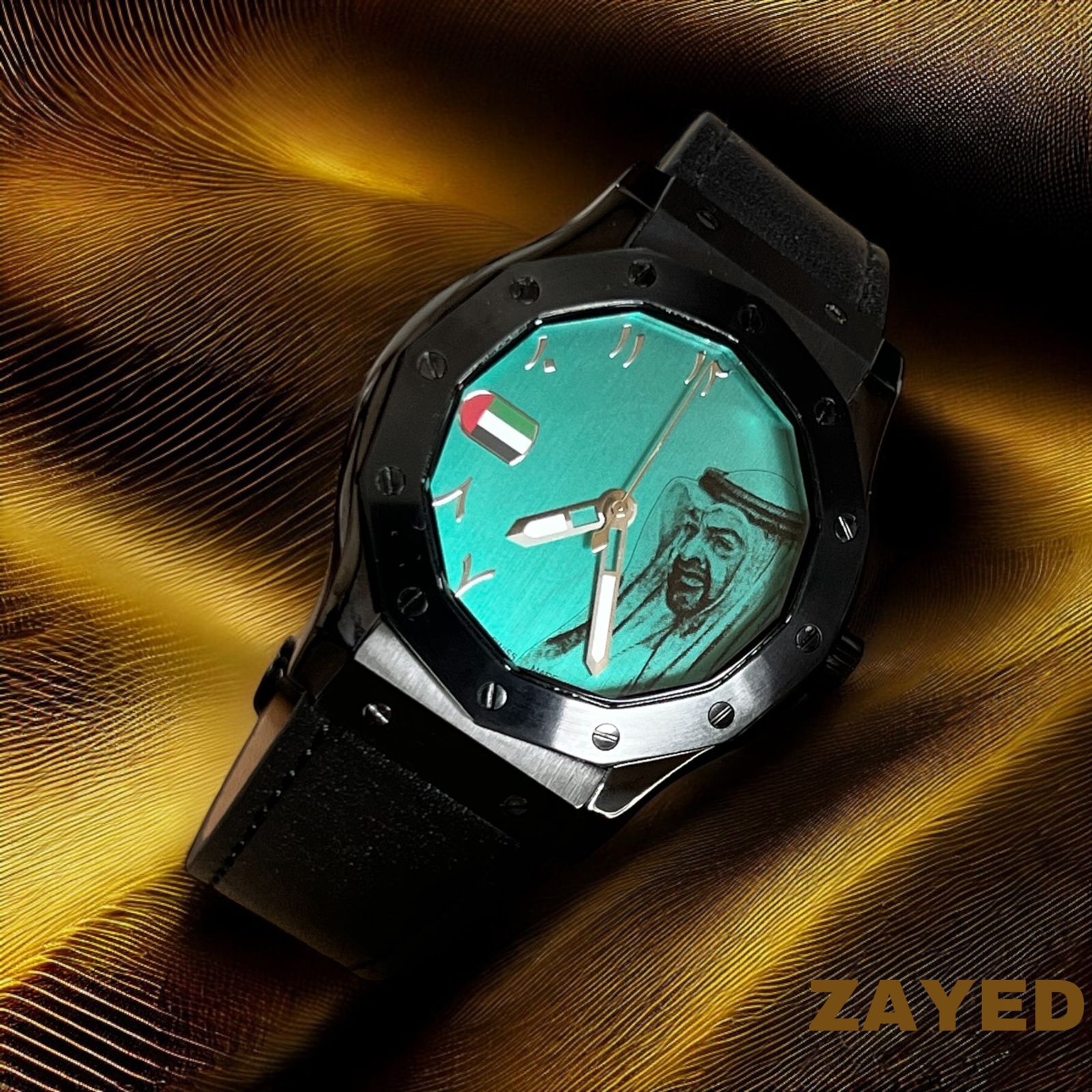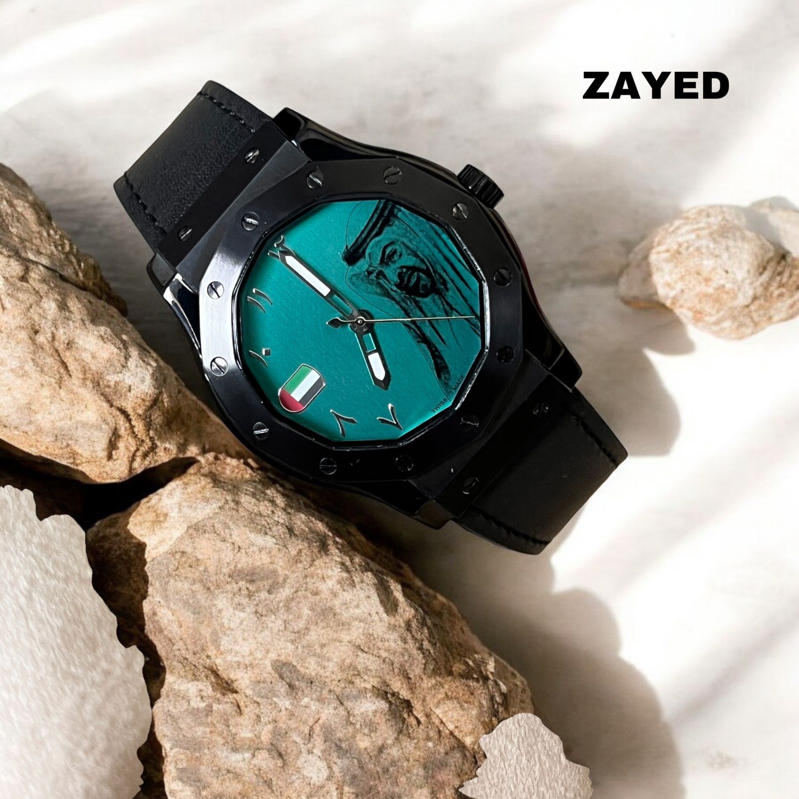 أظهر فخرك الوطني بساعة علم الإمارات العربية المتحدة زايد. تتميز هذه الساعة بمينا عربية خضراء جريئة وحزام جلدي أسود أنيق، وهي الإكسسوار المثالي لأي مناسبة. أظهر دعمك وحبك لبلدك بهذه الساعة الأنيقة والعملية.