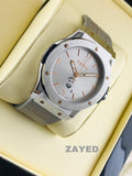 ساعة زايد للرجال بسوار رمادي معدني ومينا عربية