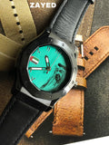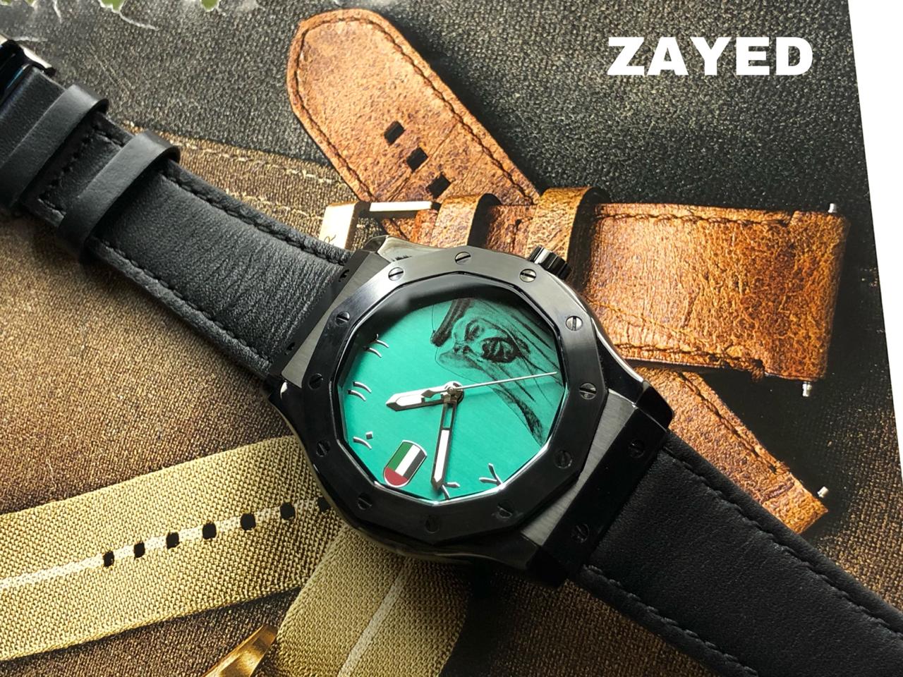 ساعة زايد للرجال بمينا خضراء و علم الإمارات العربية المتحدة