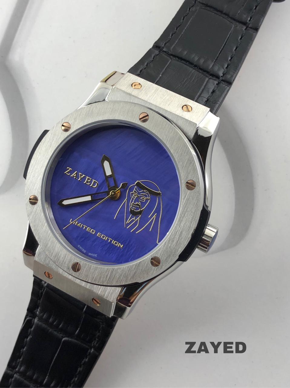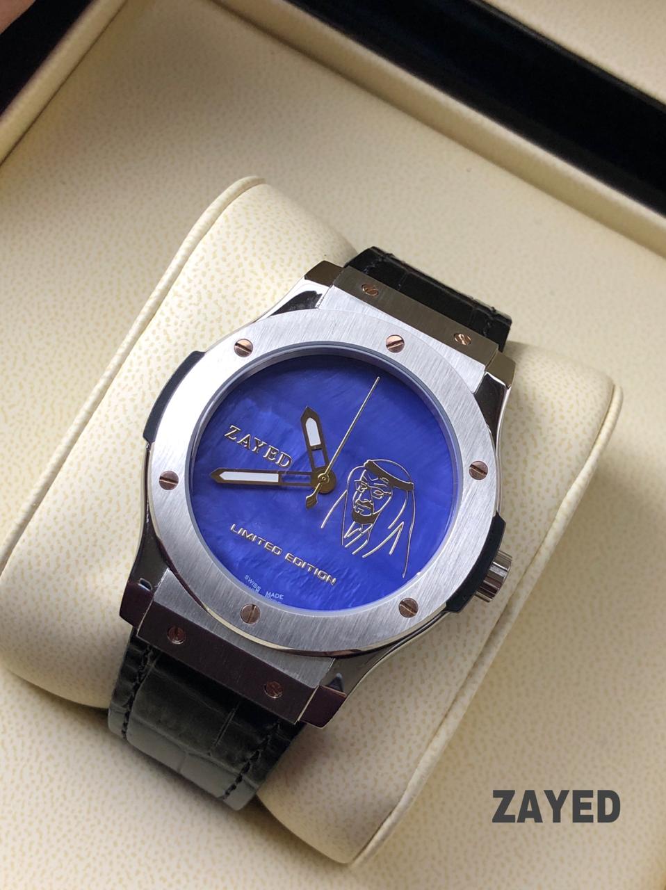 ساعة زايد للرجال بإصدار محدود بمينا زرقاء وإطار معدني وحزام أسود