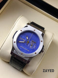 ساعة زايد للرجال بمينا زرقاء وإطار معدني وحزام أسود