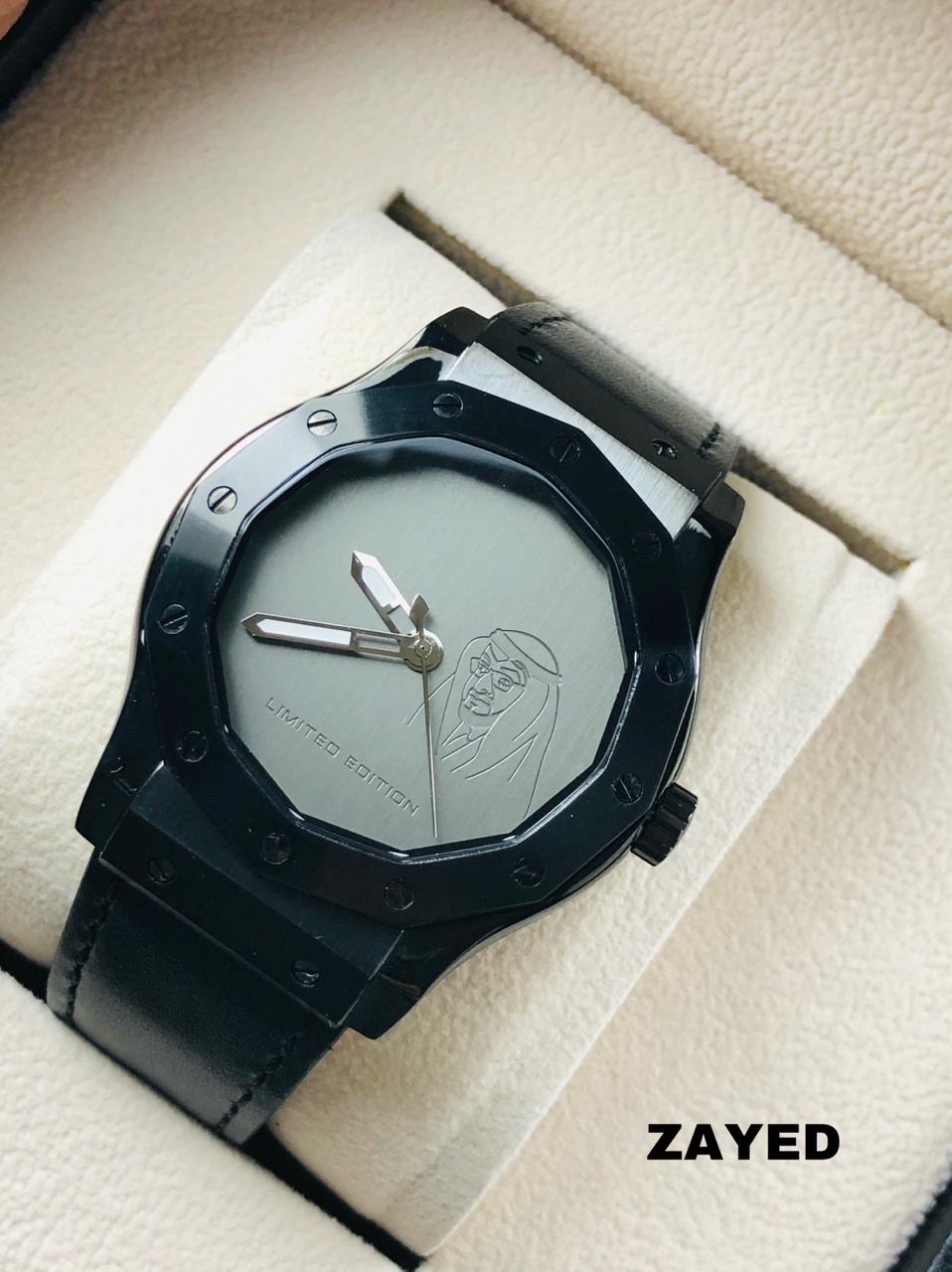 ساعة زايد إصدار محدود بمينا رمادية معدنية وحزام أسود