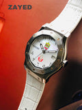 ساعة زايد للرجال بمينا وسوار باللون الأبيض الفاتح وإطار فضي