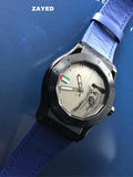 تتميز ساعة زايد بعلم الإمارات العربية المتحدة بسوار معدني ومينا زرقاء للرجال
