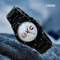 Zayed UAE Flag Emblem Arabic White Dial Black Chain Gents Watch