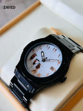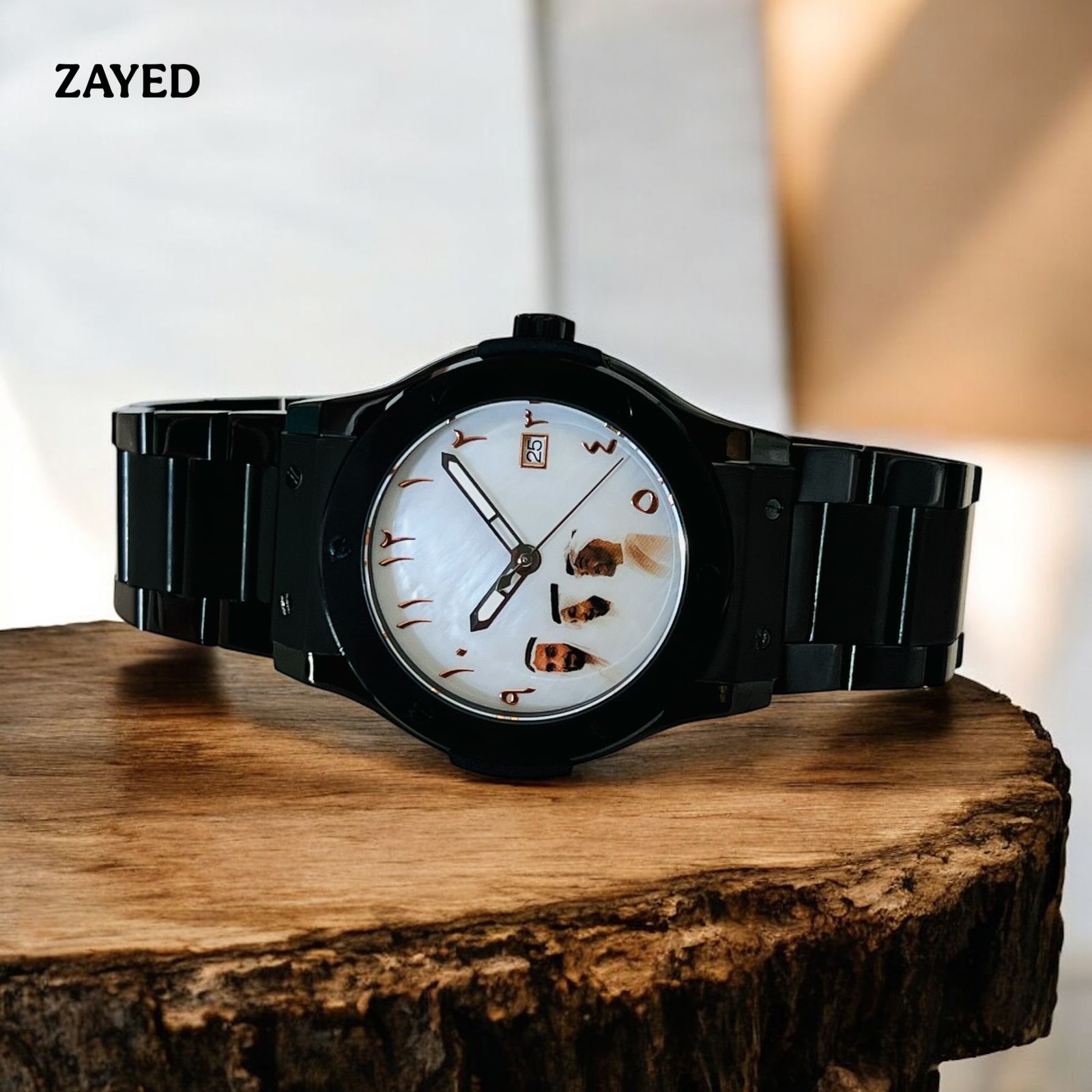 Zayed UAE Sheik Arabic Dated White Dial Black Chain Gents Watch